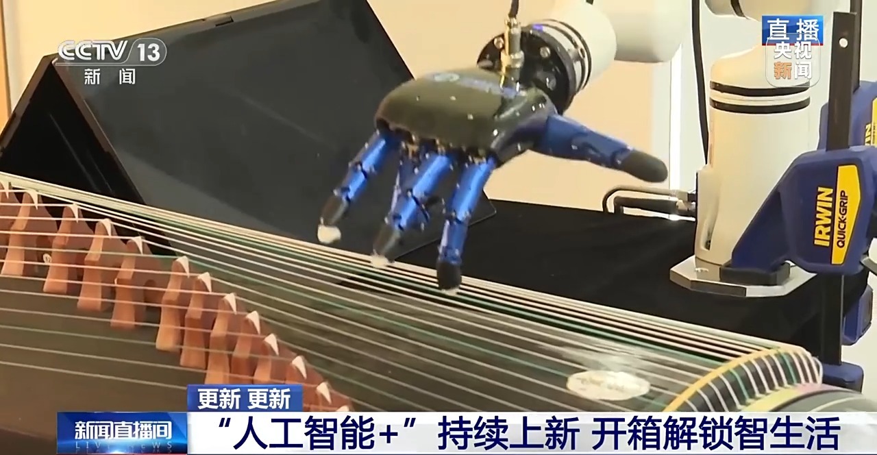 在AI的加持下,改变的还有我们的工作和生活。在我的身旁是一台灵巧手,依托于人工智能大模型技术,它能自动识别图谱进行弹奏。不仅如此,它还能满足最为复杂的工业落地应用场景。
