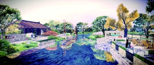 张家湾公园将以水系联通、休憩亭廊,通过绿化种植再现“水巷茶棚”的历史风貌,展示“水镇”的特色景观。