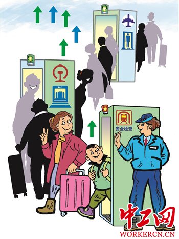 据媒体报道,乘坐高铁,排队安检,换乘地铁,还要排队安检……重复安检的现象,给广大乘客带来不便。今年春运这种现象已有改观,安检互认政策在北京、上海、广州等不少城市的交通枢纽实施,换乘旅客只需一次安检即可。