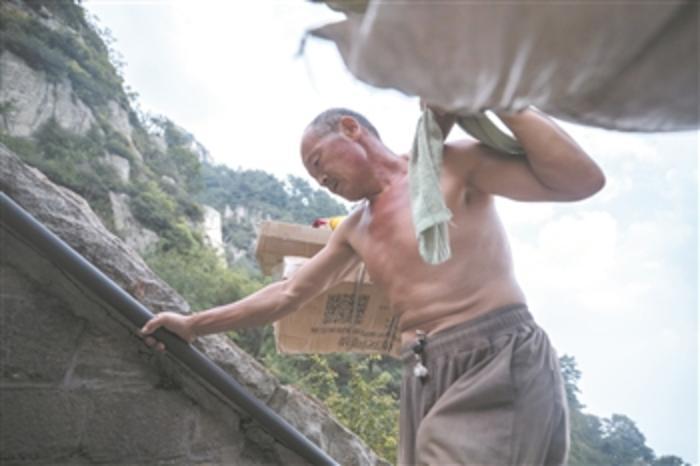 “说好的时间,不能迟了。”王怀玉确认了一下手里的发货单说,自己走得慢一些,就早点上山。此时,站在一旁帮着上担的李加法打趣地对《工人日报》记者说:“他姑娘等着要生活费咧。”
