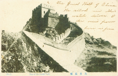 日本商人、摄影师山本赞七郎,1898年来北京经商,他喜欢拍摄北京园林景观,后来痴迷于拍摄长城,十几年间他印制了大量的长城明信片,在北京向外国人出售。这些旅居北京的外国人把明信片贴上邮票寄给远方的家人,或者亲自带到家中给亲人、朋友欣赏,长城的影像从而远播世界各地。