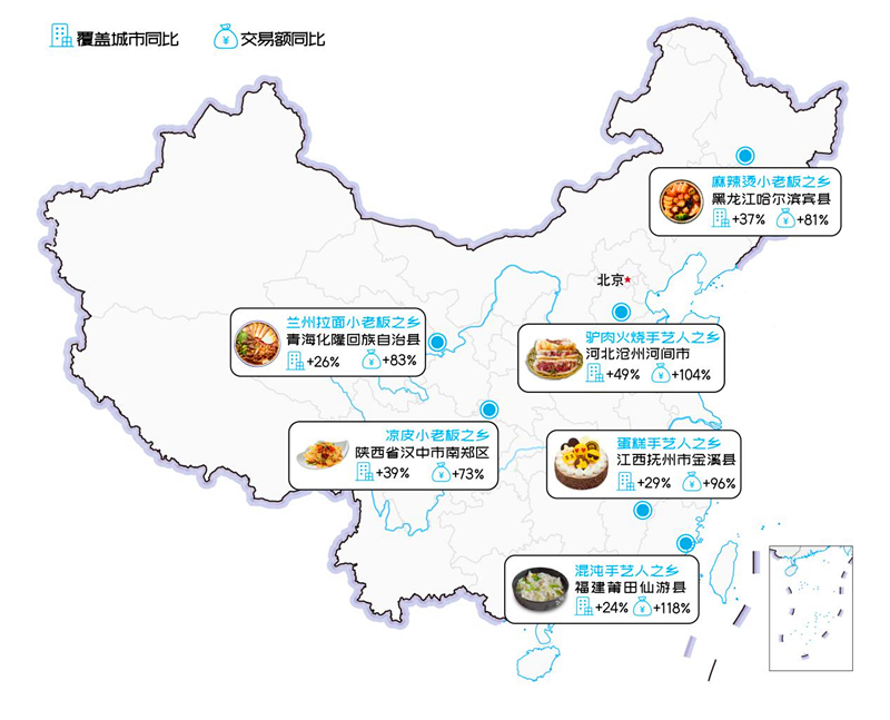 以口碑饿了么为代表的本地生活平台正在为小徐小饶这样的商户带来更为深刻的变化,《报告》显示,以凉皮这一单品为例,今年以来,凉皮覆盖城市同比增加39%,交易额同比增长73%。