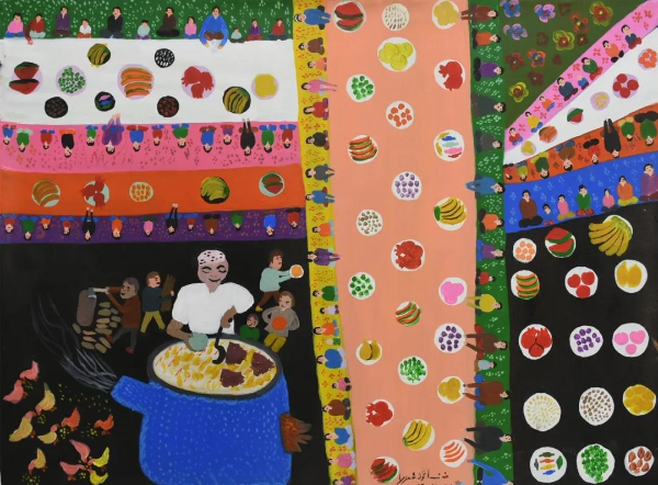 五天后,好消息传来,古丽扎尔应聘成功,被县文化馆录取了。进入文化馆工作后,古丽扎尔学习更加勤奋了,在专业老师的指导下,画画水平稳步提升。2018年10月份,古丽扎尔画的《巴扎天》农民画以600元的价格卖给浙江客商。