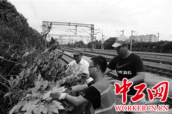 图为车站员工在清理沿线树木。吴跃东 摄