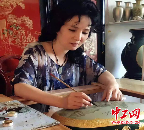 “一年只能出两三幅、三四幅作品,创作一个作品时间很长,要一部分一点点地上色。”上官俊华说,漆是很稠的,它是有粘性的。更重要我们脱胎漆器是要在一个器皿上呈现,它是立体的东西,包括它设计也是。“一个作品要有生命力,要融入自己的情感,自己的思维,自己想表达的语言。”