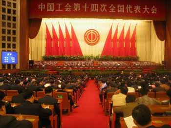 中国工会第十四次全国代表大会2003年9月22日至26日在北京举行。9月22日上午,代表大会在人民大会堂隆重开幕,1600多名来自全国各地、各条战线的工会代表相聚北京,出席中国工会在新世纪召开的第一次全国代表大会。胡锦涛、吴邦国、温家宝、贾庆林、曾庆红、黄菊、吴官正、李长春、罗干等党和国家领导人到会祝贺。