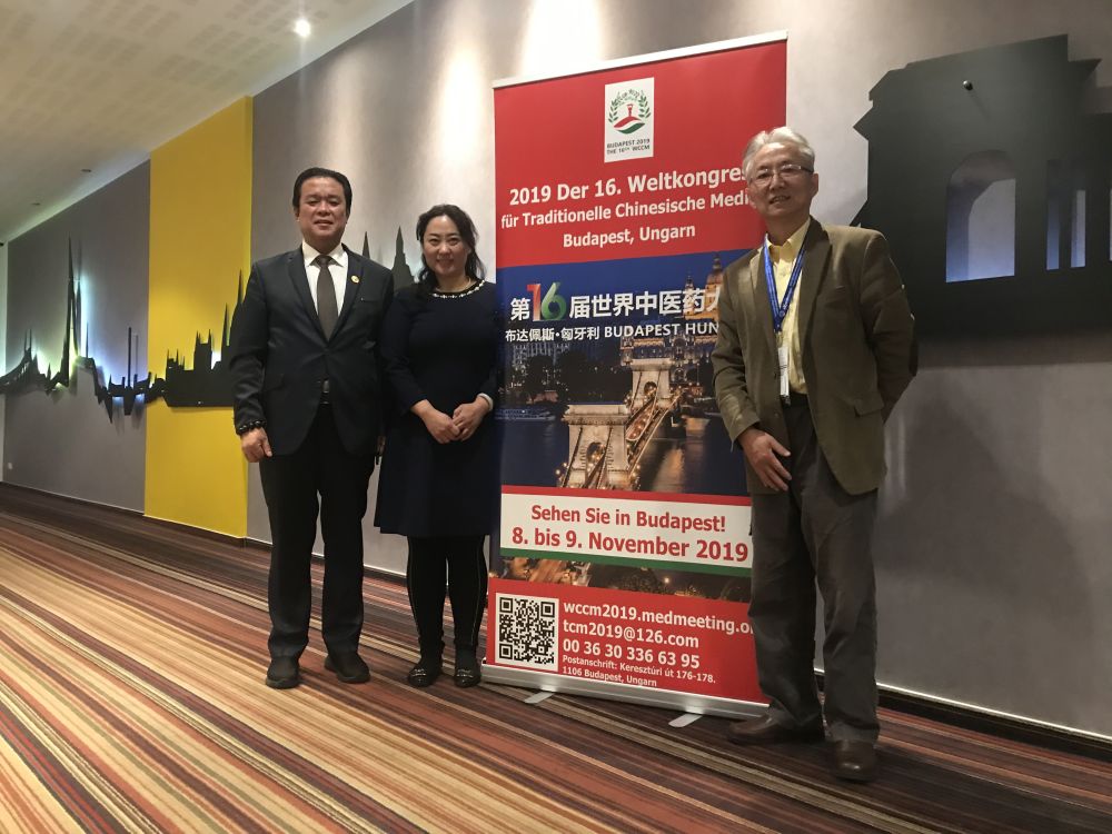 资料图片:张德超在匈牙利布达佩斯参加世界中医药大会。受访者供图