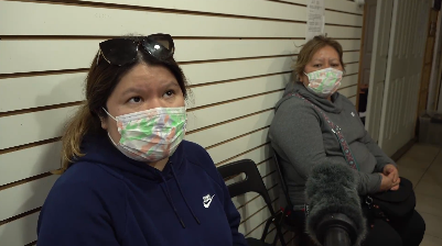 前来德誉堂中医诊所看病的病患家属(左)接受新华社采访。视频截图