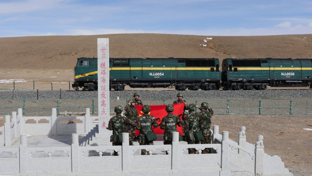 巡逻路的起点,矗立着“世界铁路海拔最高点5072米”的纪念碑,碑上清楚地刻着青藏铁路修建过程和108位为修建铁路“血染黄沙、长眠高原”的烈士名单。“敬礼!”随着排长马文山的口令,张凡举起右手的同时也红了眼眶。“那是我为这条天路敬的第一个军礼。严寒带来的疼痛和脚下坚实的冻土,让我们更能感受修建青藏铁路的不易。”张凡说,“所以每当巡逻分队路过这块纪念碑,我们都会向它敬一个标准的军礼。是缅怀,更是誓言:我们会守好先辈们留下的每一寸土地。”