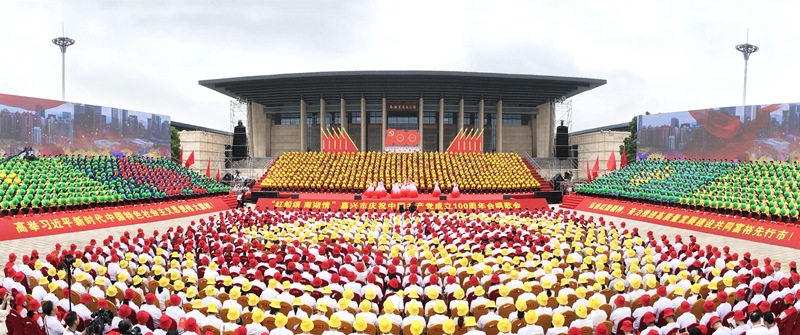 嘉兴市庆祝中国共产党成立100周年大型合唱歌会。新华社发 盛建生摄 嘉兴日报供图