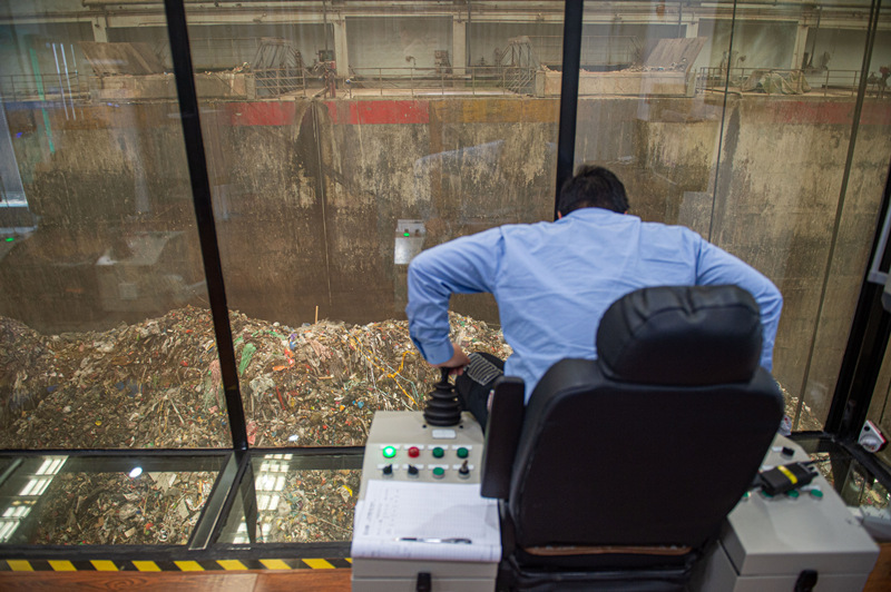 2020年12月17日,在嘉兴市海盐县绿能环保项目园区内,工作人员正在操纵垃圾吊车。新华社发 江汉 摄