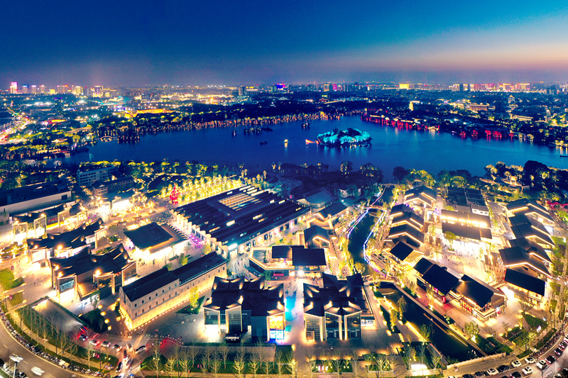 南湖东岸的南湖天地规划了鸳湖里弄、嘉绢印象、南湖书院、南堰新景四大主题街区,公园式漫步空间成为嘉兴新地标之一。新华社发 田建明摄 嘉兴日报供图