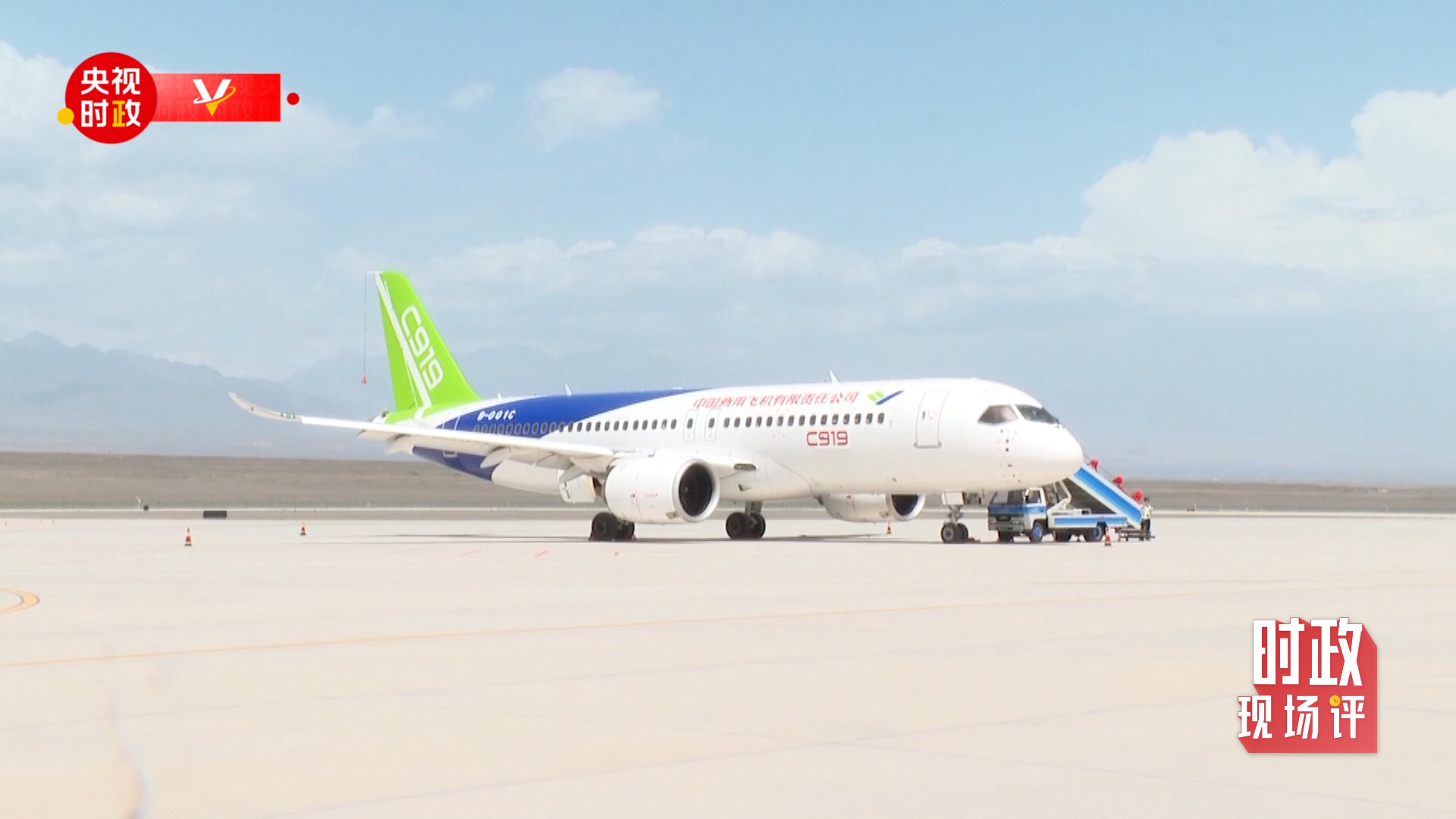 △在吐鲁番开展高温专项试飞的国产C919客机
