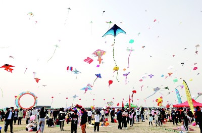 “纸花如雪满天飞,娇女秋千打四围。”清代郑板桥在《怀潍县》诗中这样描绘当时潍县放风筝的情景。春暖花开时节,我们来到第40届潍坊国际风筝会,只见漫天的风筝真如大雪一般在天上飞舞。