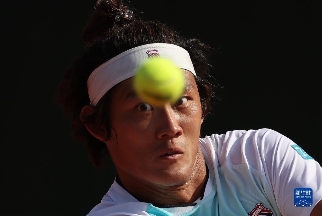 6月1日,迪兰特在比赛中回球。新华社记者高静摄