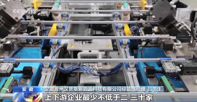 安徽滁州汉普斯新能源科技有限公司综管部经理 吕书生:我们企业处于太阳能光伏发电的中游位置,落地滁州发展,是看中了滁州的产业链优势,与我们企业相关的上下游企业不低于二三十家,很多都是头部企业。与这些上下游企业合作,能提高我们的合作效率,同时能大大降低我们的仓储和物流成本。