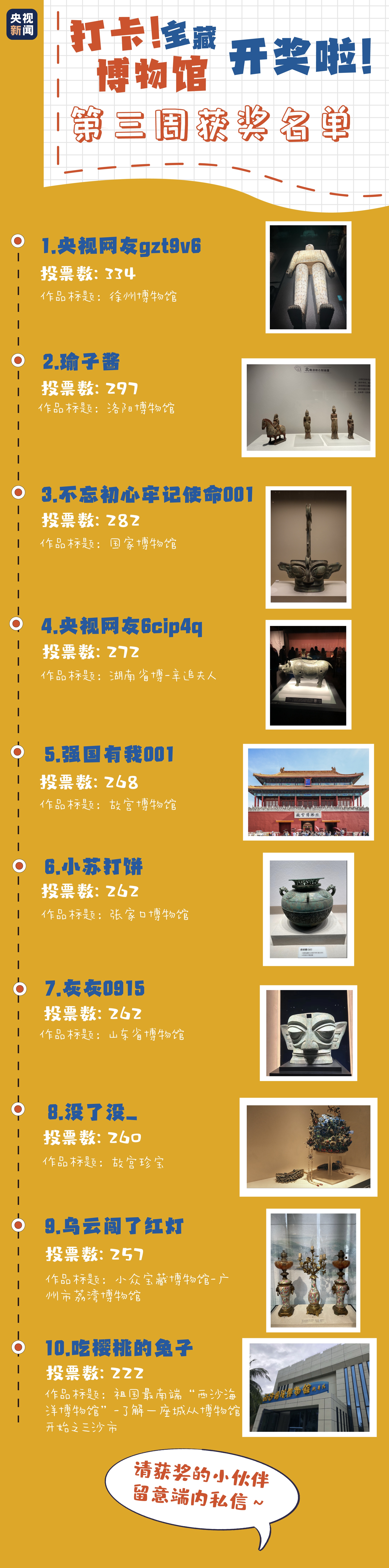 原标题:本期开奖来啦!“打卡!宝藏博物馆”第三周获奖名单公布