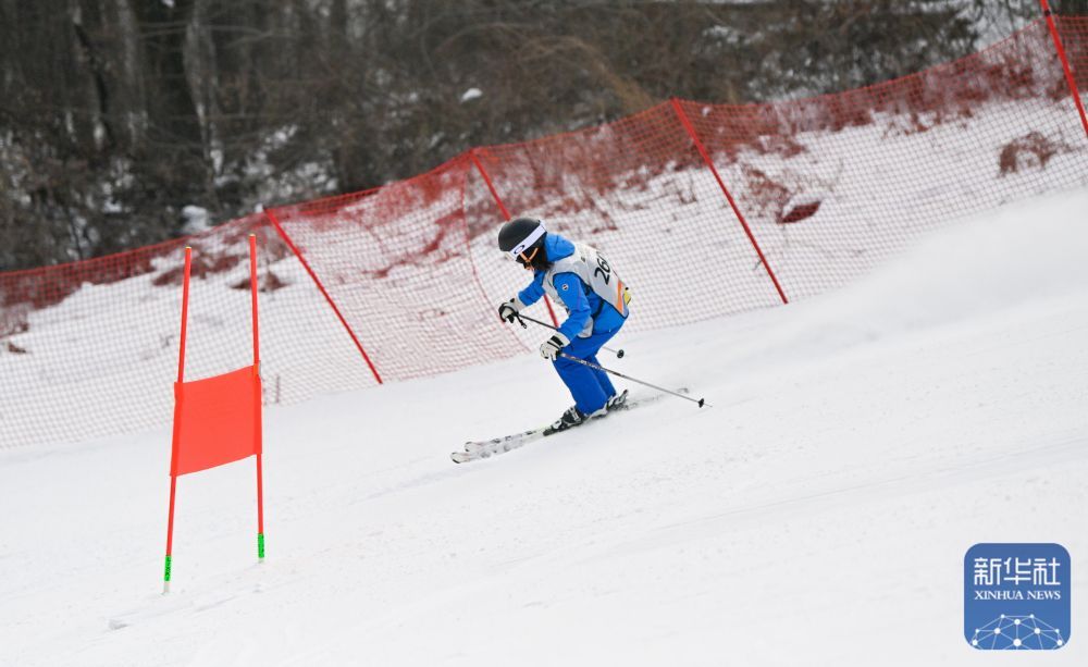 新疆维吾尔自治区总工会选手杨梦思在高山滑雪女子大回转项目比赛中。