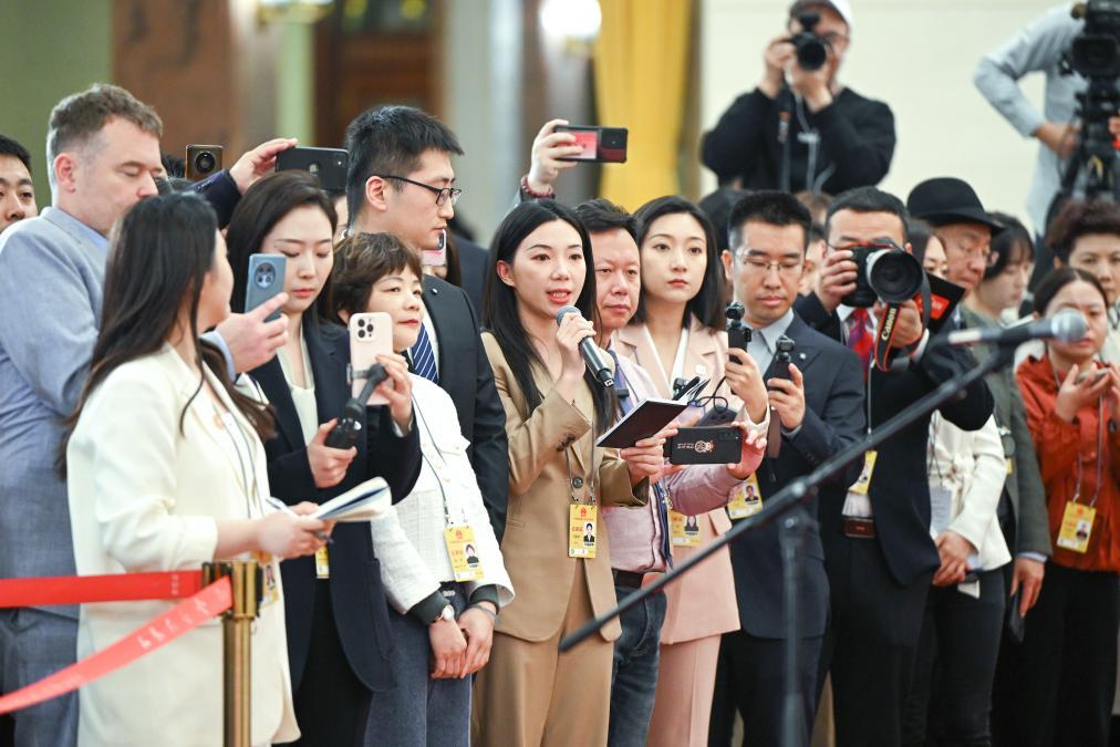 3月8日,第十四届全国人民代表大会第三次会议第二场“部长通道”集中采访活动在北京人民大会堂举行。这是记者在现场提问。新华社记者 胥冰洁 摄
