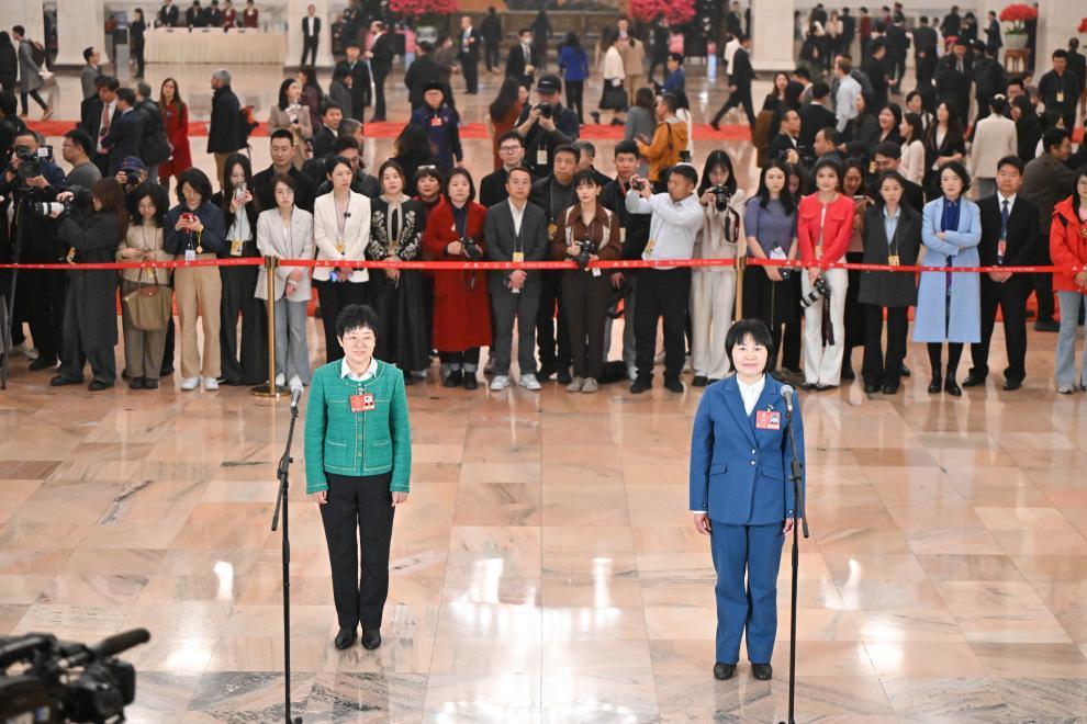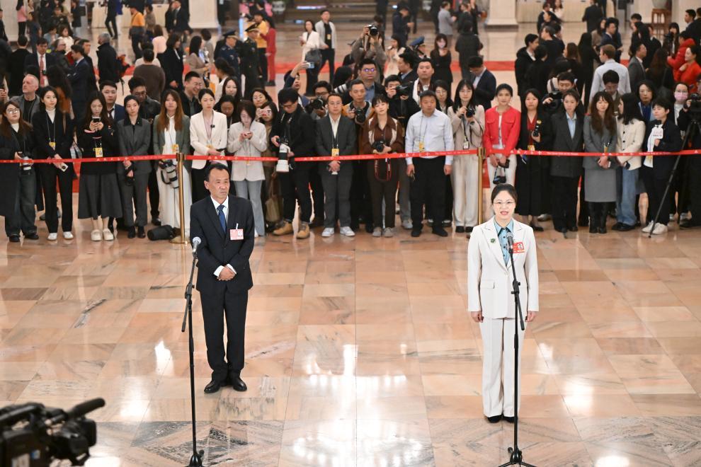 3月11日,第十四届全国人民代表大会第三次会议第三场“代表通道”集中采访活动在北京人民大会堂举行。新华社记者 胥冰洁 摄