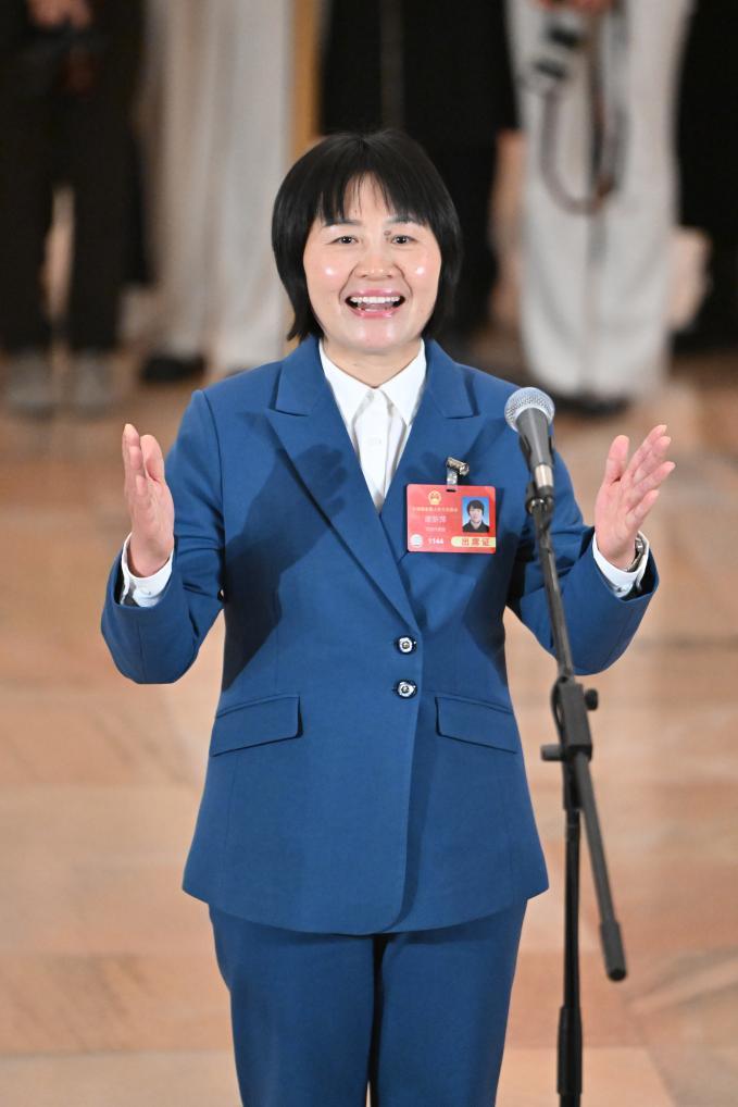 3月11日,第十四届全国人民代表大会第三次会议第三场“代表通道”集中采访活动在北京人民大会堂举行。这是全国人大代表谭新萍接受媒体采访。新华社记者 胥冰洁 摄