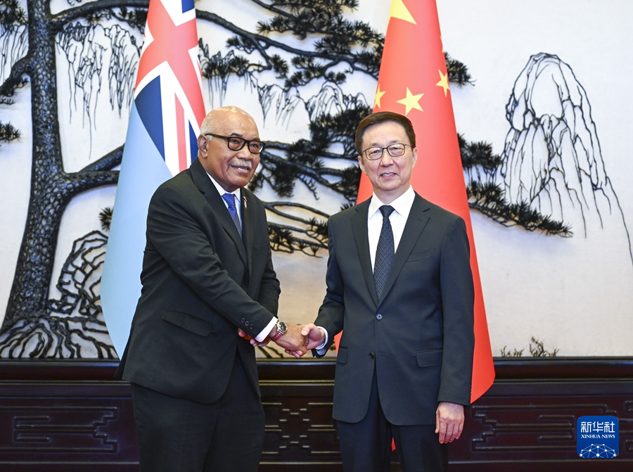 韩正表示,斐济是最早同新中国建交的太平洋岛国,建交50年来,中斐关系历经国际风云变幻考验,成果丰硕,两国已成为相互尊重、共同发展的全面战略伙伴。中方愿同斐方共同努力,认真落实两国领导人达成的重要共识,弘扬传统友好,共同庆祝好建交50周年;深化政治互信,坚定支持彼此核心利益和重大关切;打造更多合作成果,加强多边合作,推动中斐关系持续健康发展。