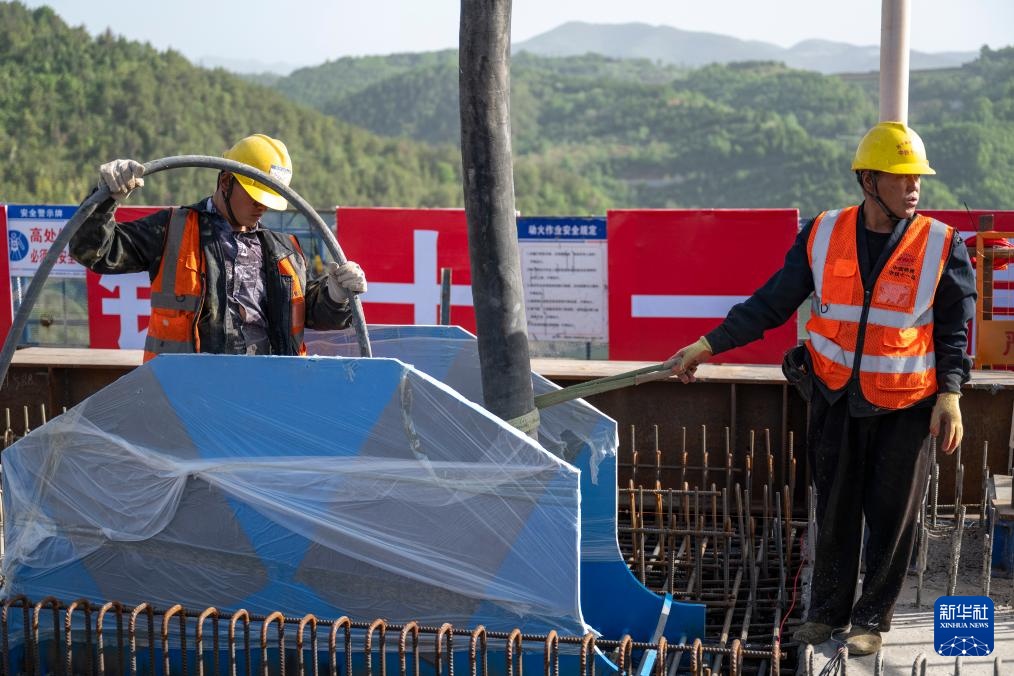 4月14日拍摄的汉江特大桥合龙施工现场(无人机照片)。新华社记者 伍志尊 摄