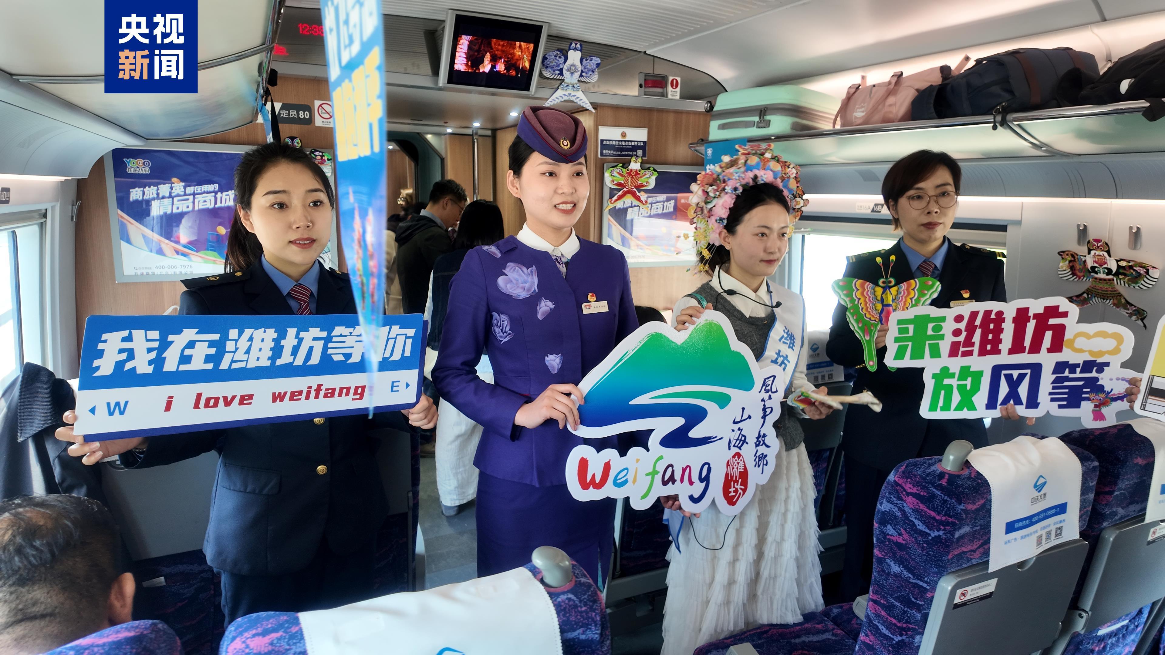 据介绍,今年潍坊国际风筝会期间,国铁济南局分别开通了由北京南站和青岛站始发的G1069次和G5552次“潍坊风筝号”旅游专线列车,吸引更多旅客来潍坊,领略春日风光、体验风筝文化。