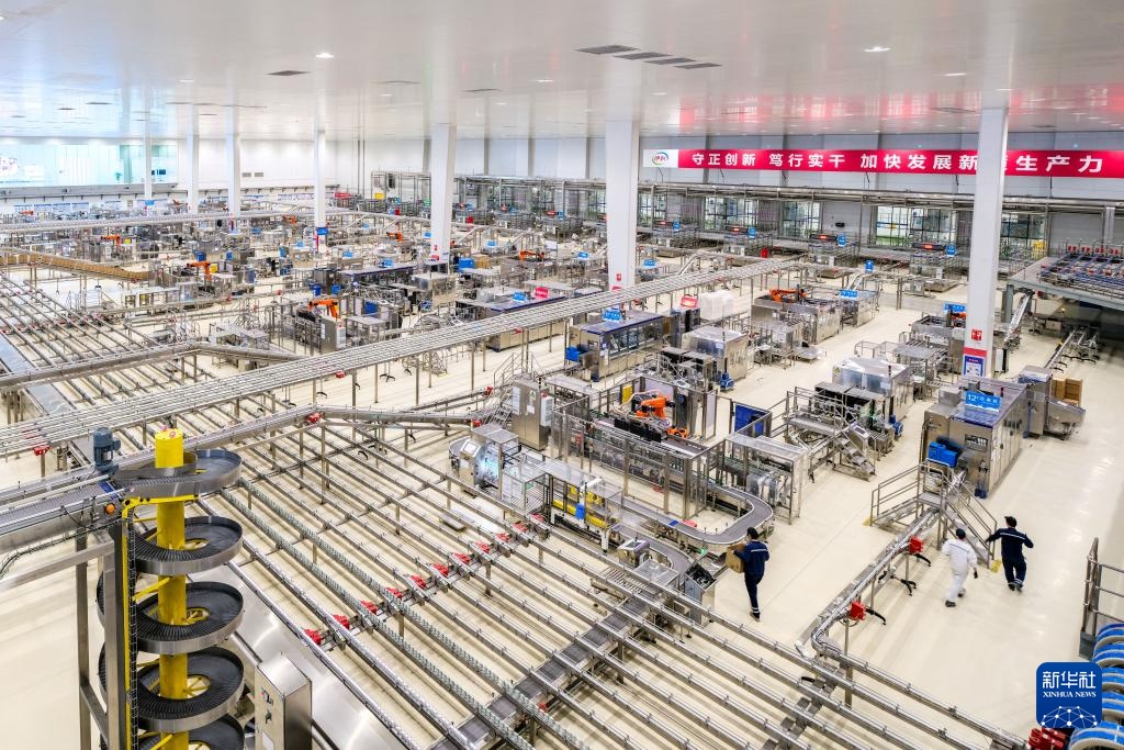 4月17日拍摄的呼和浩特市土默特左旗伊利现代智慧健康谷全球智能制造产业园液态奶全球智造标杆基地。新华社记者 马金瑞 摄