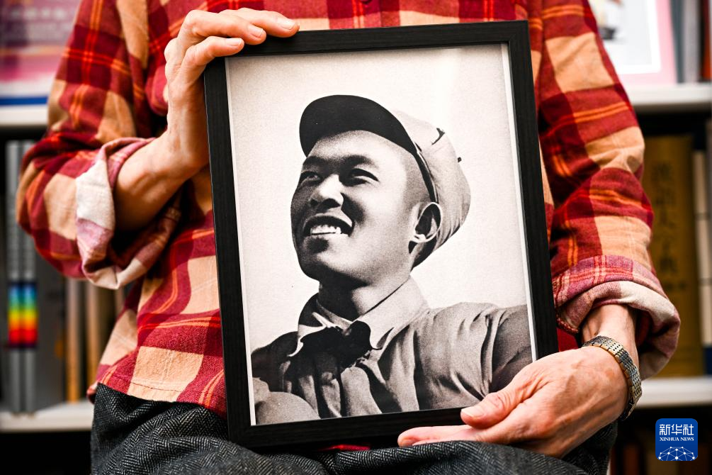 4月14日,在浙江省杭州市,雷烨外甥女项碧英在家中手捧雷烨烈士抗战时期的肖像照。新华社记者 刘金海 摄