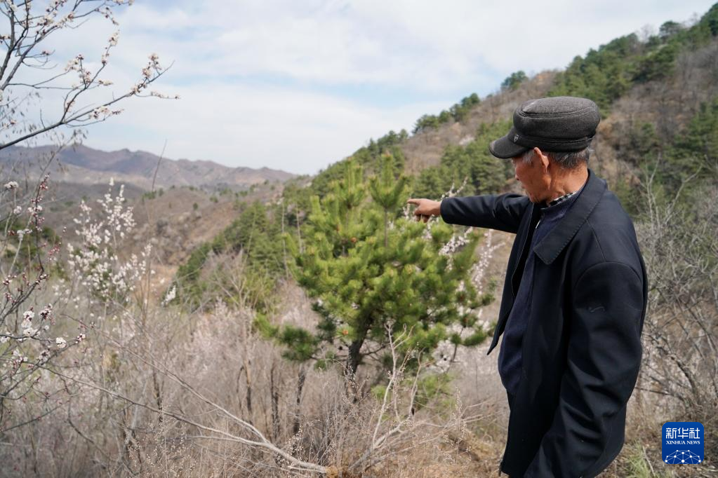 3月31日,河北省平山县南段峪村村民、雷烨希望小学退休教师王海军指认雷烨烈士牺牲处的山谷。新华社记者 牟宇 摄