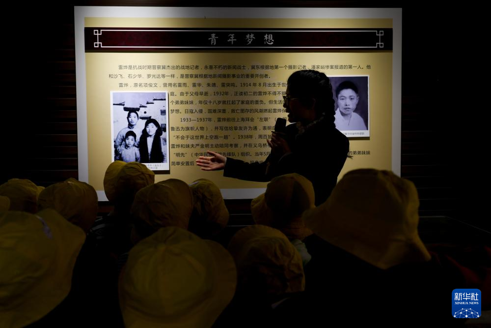 在位于浙江省金华市金东区孝顺镇新后项村的雷烨故居,讲解员介绍雷烨烈士生平事迹(4月2日摄)。新华社记者 刘金海 摄