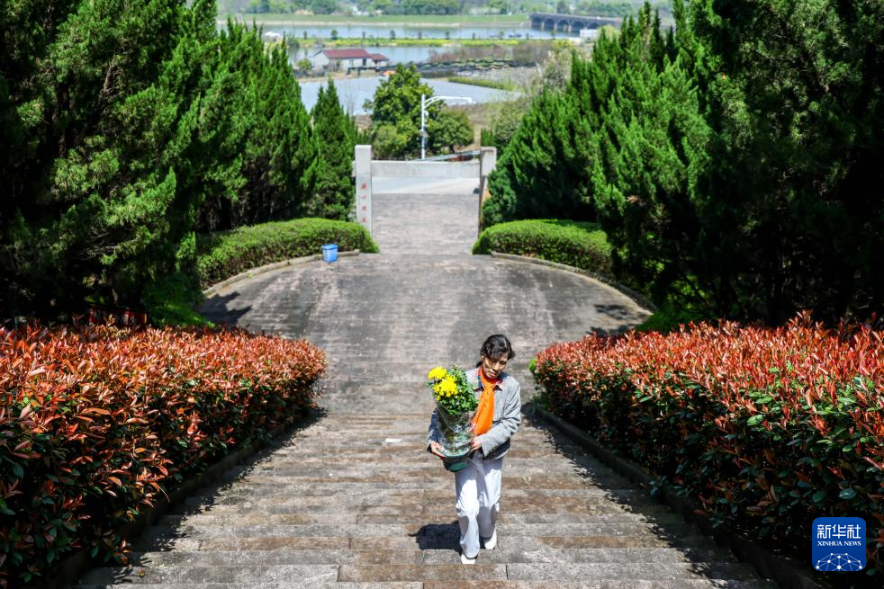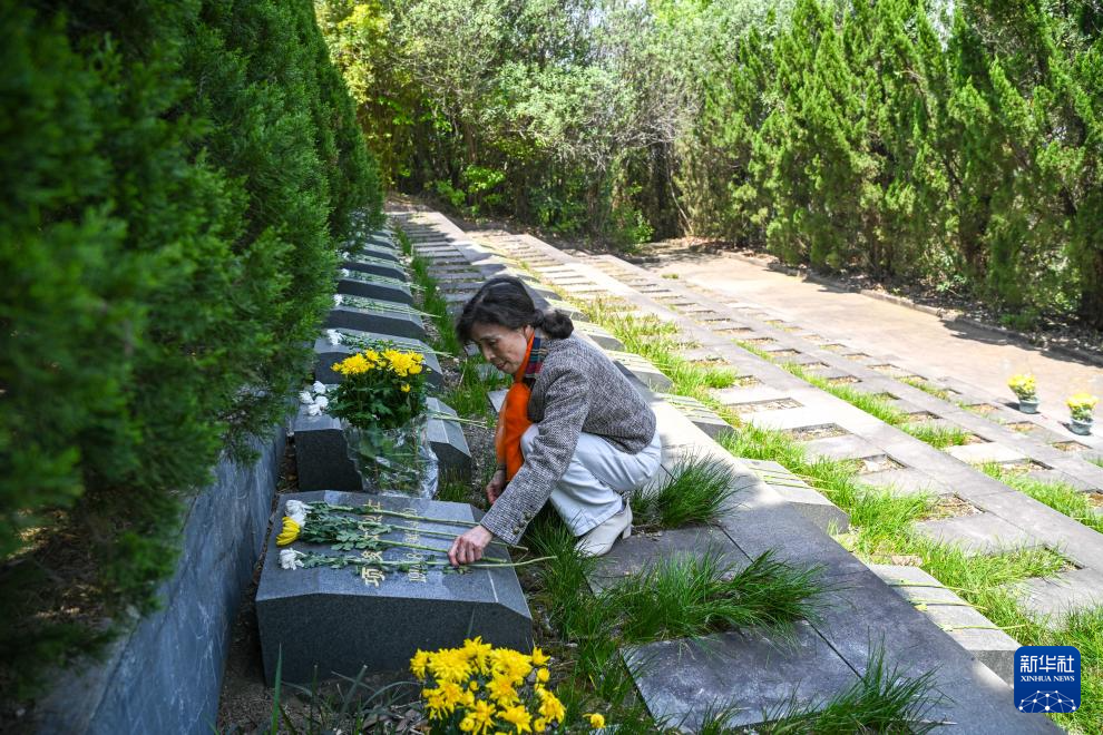 4月2日,在浙江省金华市孝顺革命烈士陵园,雷烨外甥女项碧英前往祭扫雷烨。新华社记者 刘金海 摄