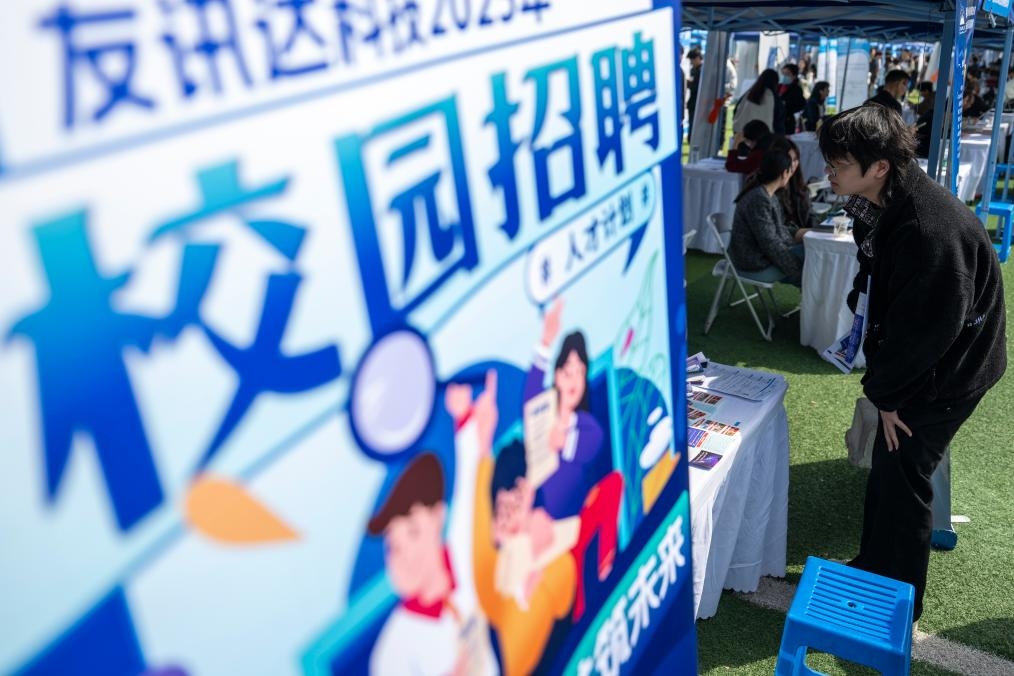 2025年4月1日,求职者在湖北工业大学专场招聘活动现场了解岗位信息。新华社记者 伍志尊 摄