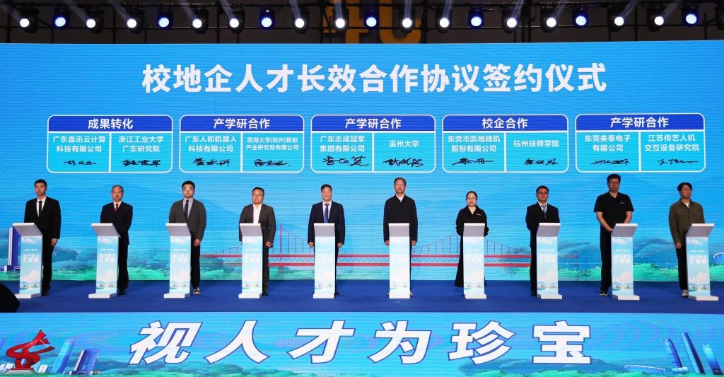 2025年4月19日,招聘会现场举行校地企人才长效合作协议签约仪式。新华社记者 黄国保 摄