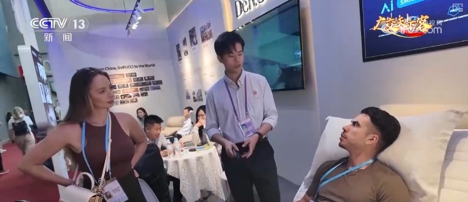 同样是传统产业,在室内家居展区,一张搭载AI算法的智能床垫引来采购商争相体验,开展第一天就有50多个不同国家的意向客户。参展商介绍,他们将这款搭载最新技术的新产品在广交会展出,不仅是为了销售产品,更主要的是要提高品牌影响力。