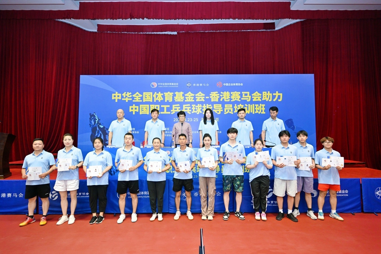 本次培训由中华全国体育基金会和香港赛马会提供资助与捐赠,中国企业体育协会主办,国家体育总局群体司、海南省乒协提供支持。香港赛马会国内体育项目主任顾问任军、中华全国体育基金会事业发展部副部长岳超、中国企业体育协会副秘书长徐彦博、海南省乒乓球协会执行秘书长吴元健等嘉宾出席结业仪式并为学员们颁发证书。结业仪式上,优秀学员代表为到场嘉宾展示了“多球训练”和“模拟执裁”两个实践课考试项目。