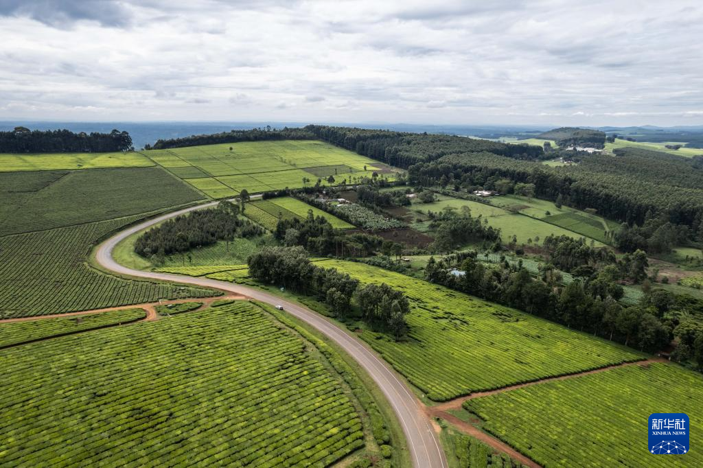 在4月雨水的滋润下,肯尼亚西部连绵起伏的茶园焕发着勃勃生机。在肯尼亚核心茶产区,中企承建的C22公路不远处,多家茶叶加工厂正在加紧生产。