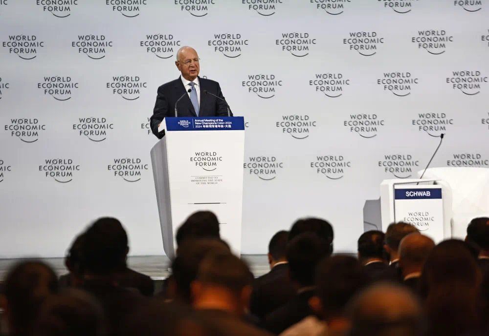 2024年6月25日,世界经济论坛主席施瓦布在夏季达沃斯论坛上致辞。新华社记者 杨青 摄