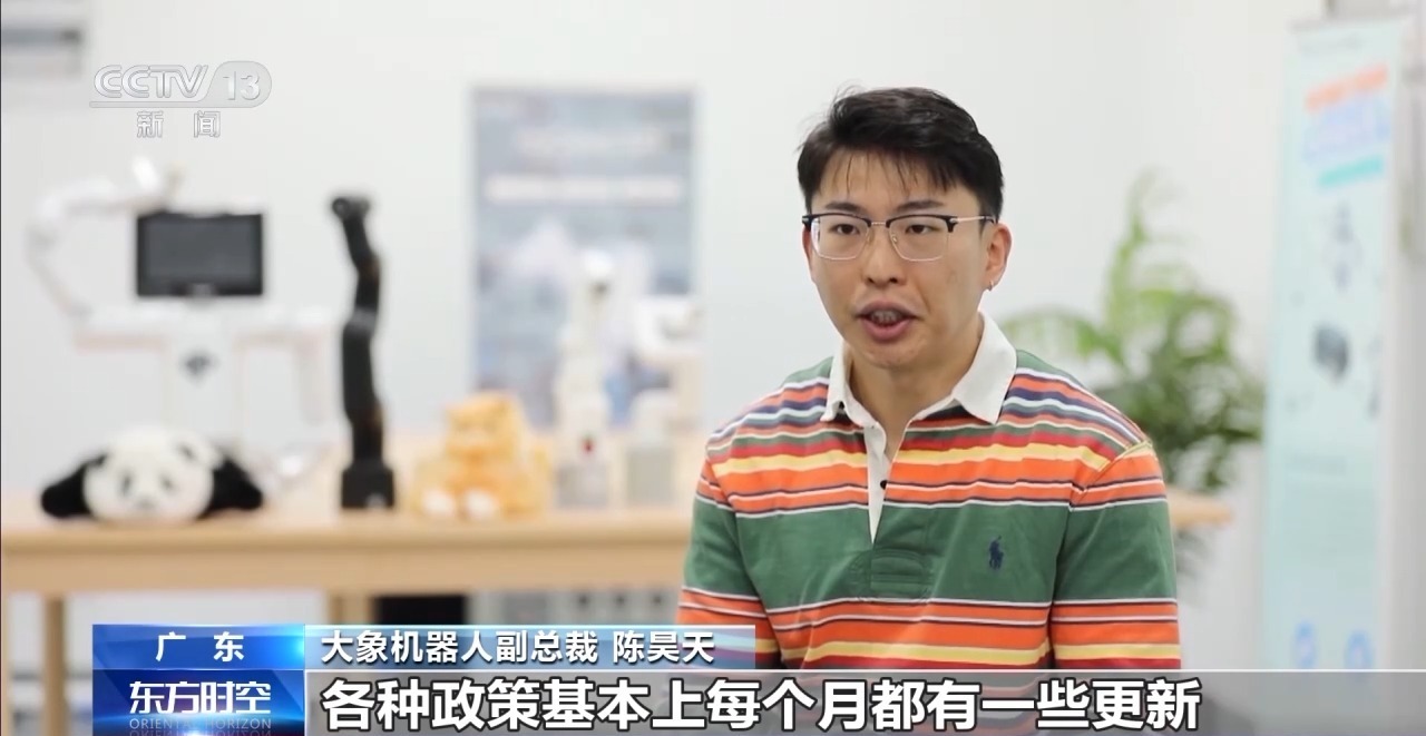 大象机器人副总裁 陈昊天:各种政策基本上每个月都有一些更新,在机器人的训练、数据的采集,去帮助我们成长。
