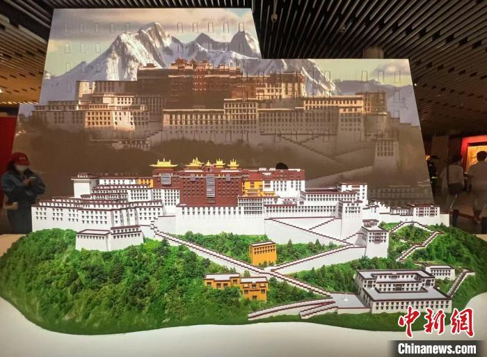 图为展厅入口处呈现的按比例缩小的布达拉宫模型。记者 岳依桐 摄