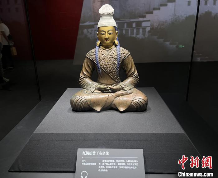 图为展出的红铜松赞干布坐像。记者 岳依桐 摄
