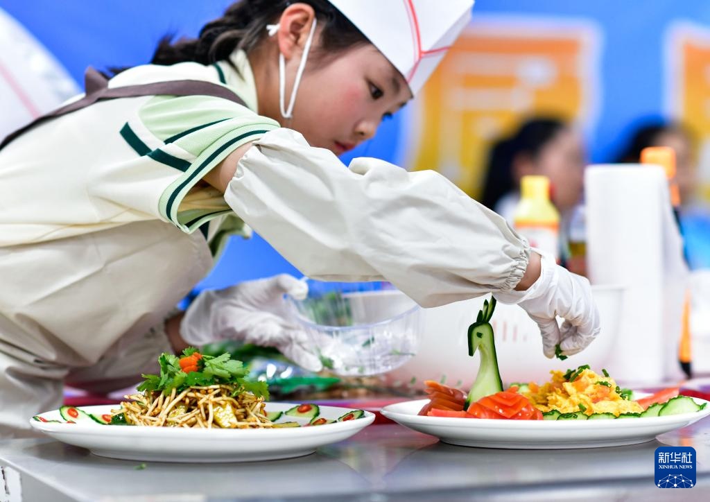 4月27日,学生在贵州省龙里县中等职业学校赛场参加烹饪比赛时摆盘。新华社记者 杨文斌 摄