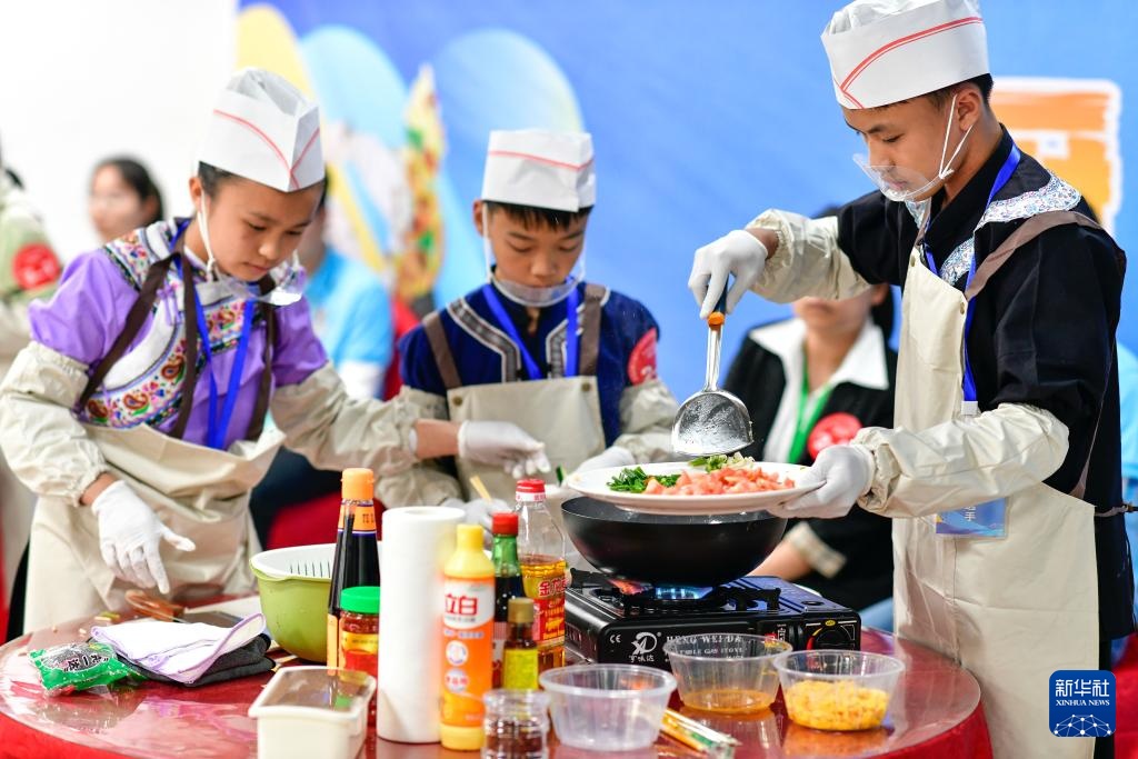 4月27日,学生在贵州省龙里县中等职业学校赛场参加烹饪比赛。新华社记者 杨文斌 摄