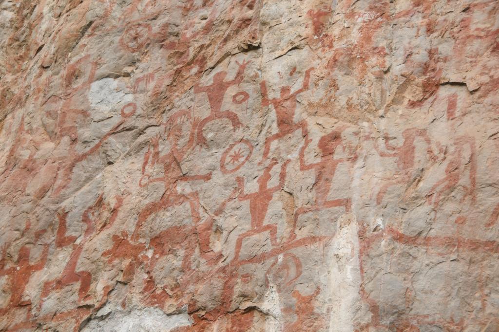 景区讲解员介绍,花山岩画面积8000多平方米,有各种图像1900多个,创作于战国至东汉时期,距今已有两千多年的历史。2016年被列入《世界遗产名录》,填补了中国岩画类世界遗产空白。