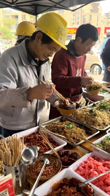 正如上述食堂主管所介绍的,工友们用餐关注的重点在于量大、实惠。而这样受农民工欢迎的爱心食堂也并非武汉专属,重庆石柱、浙江杭州、广东广州等地也各有创意。