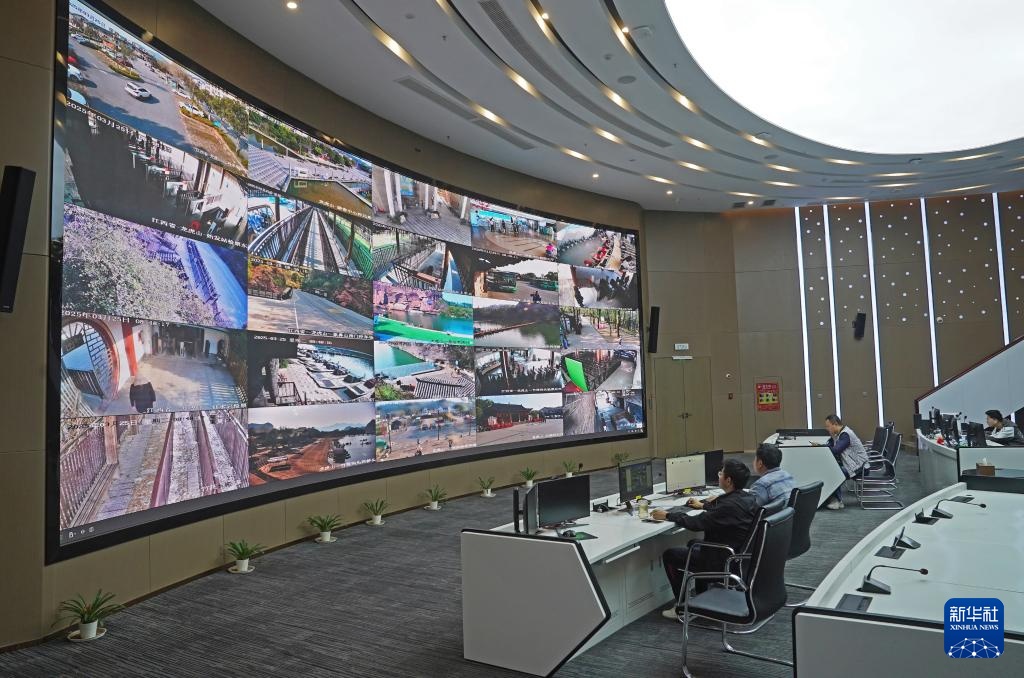 在江西龙虎山风景名胜区智慧管理中心,工作人员通过智慧调度系统监控管理景区(3月25日摄)。新华社记者 万象 摄
