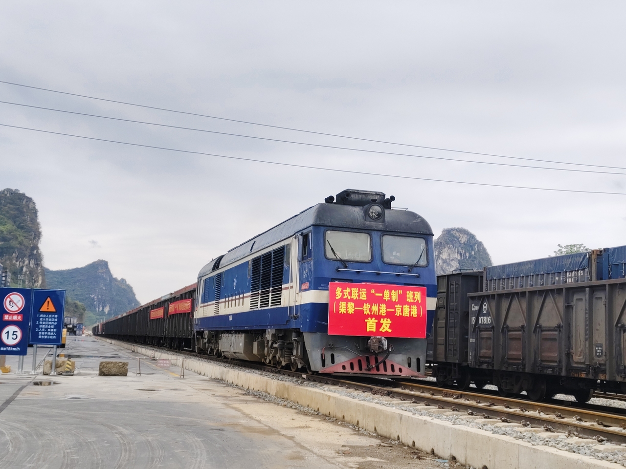 4月28日10时40分,一辆运载1375吨高钙石的集装箱班列从广西崇左市渠黎站驶向钦州港东站,到达港口后将由中铁集装箱公司负责换乘海运班轮发往河北唐山市京唐港。这是中国铁路南宁局集团有限公司与安通控股股份有限公司在铁路95306平台联合签发的广西首张集装箱多式联运“一单制”运单,标志着广西西部陆海新通道铁海联运新模式的开启。