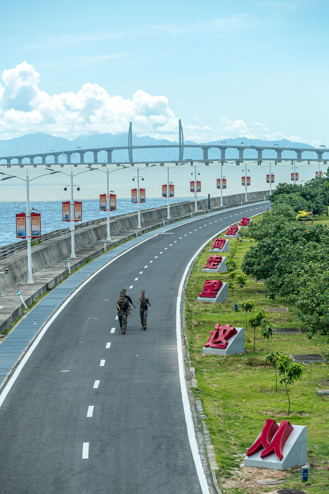晨光熹微,中队指导员陈振炜带领官兵从拱北口岸出发,前往中队原“一号哨位”。那里,曾是他们守护港珠澳大桥建设的前沿阵地。