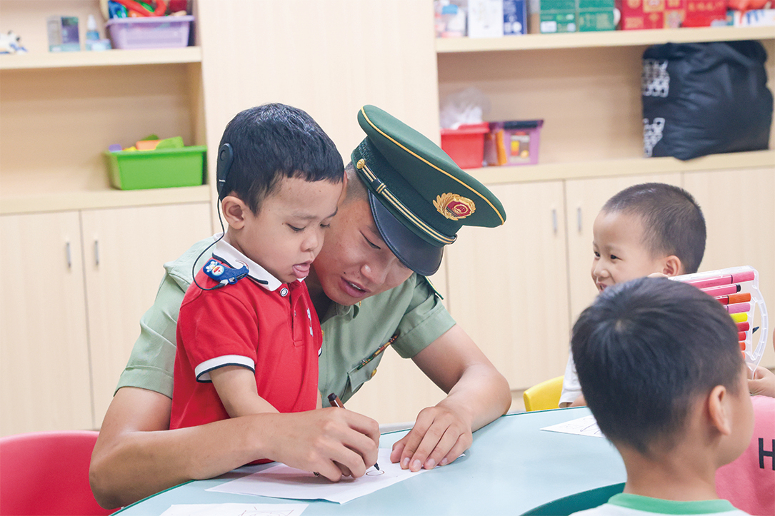 2024年“六一”前夕,官兵带着蛋糕与军乐再度赴约,孩子们以“武警叔叔好”的唇语、热情的拥抱和画满迷彩的贺卡相迎。17年间,官兵已从“帮扶者”变为孩子们的“家人”,用“地板鼓点”叩开无声世界,以“手语敬礼”架起心灵桥梁。院长许月娥说,这抹橄榄绿已成为患儿认知世界的“一道光”。